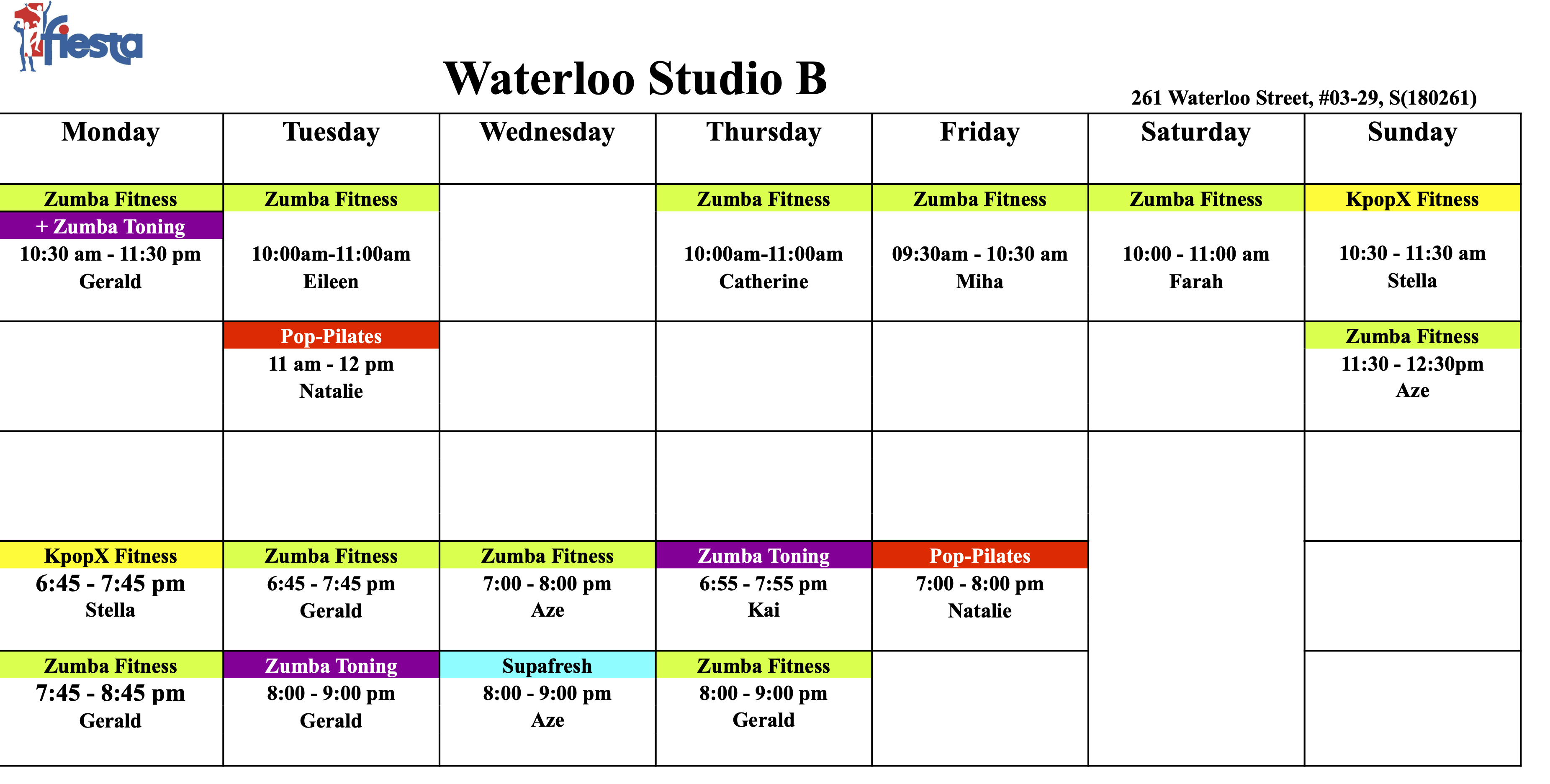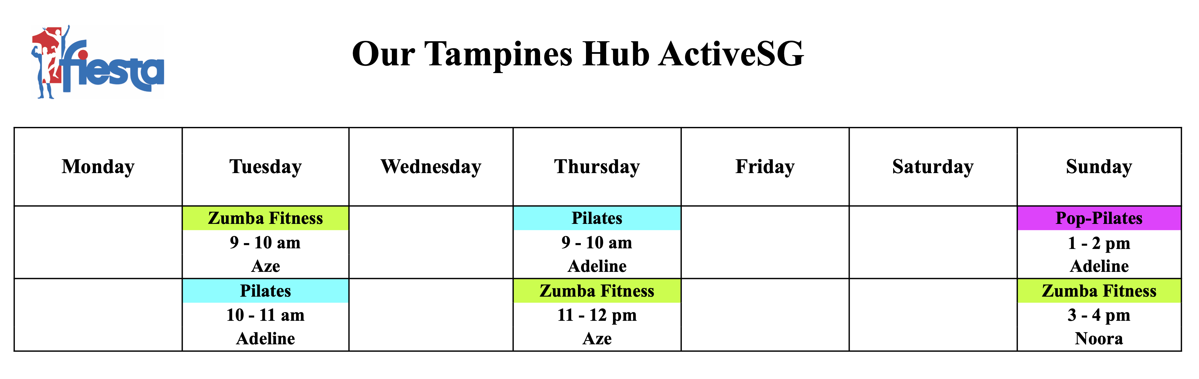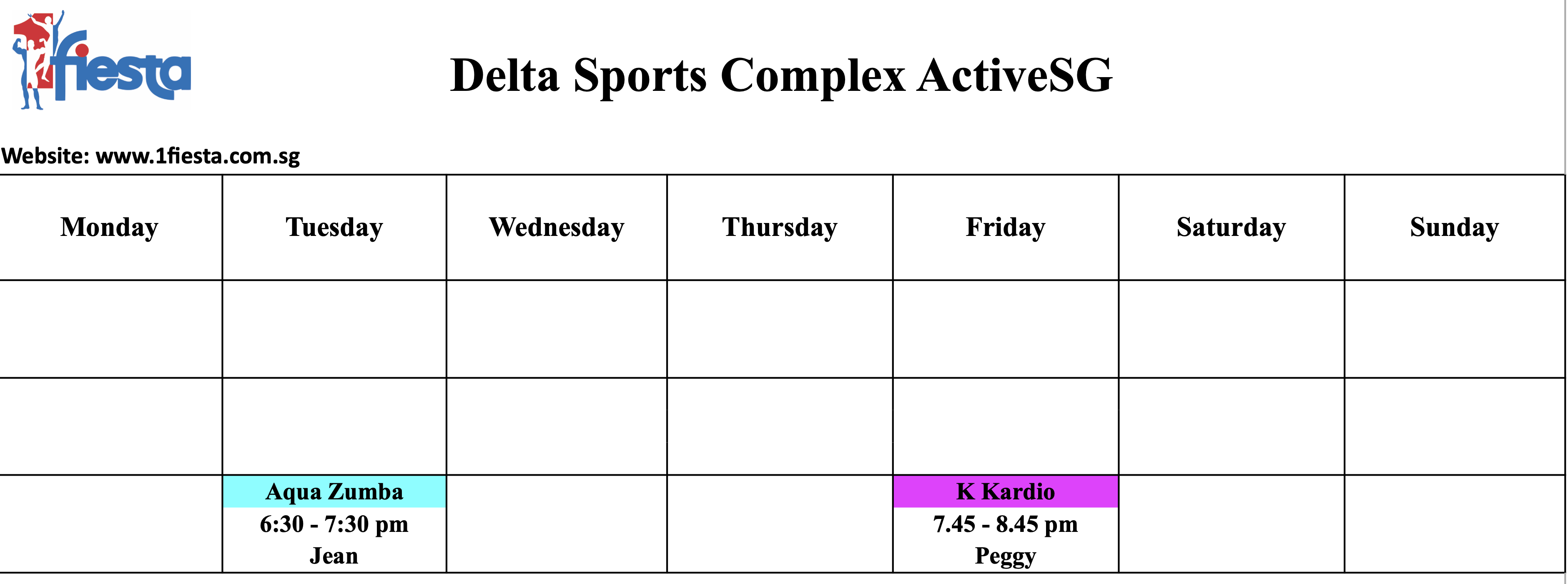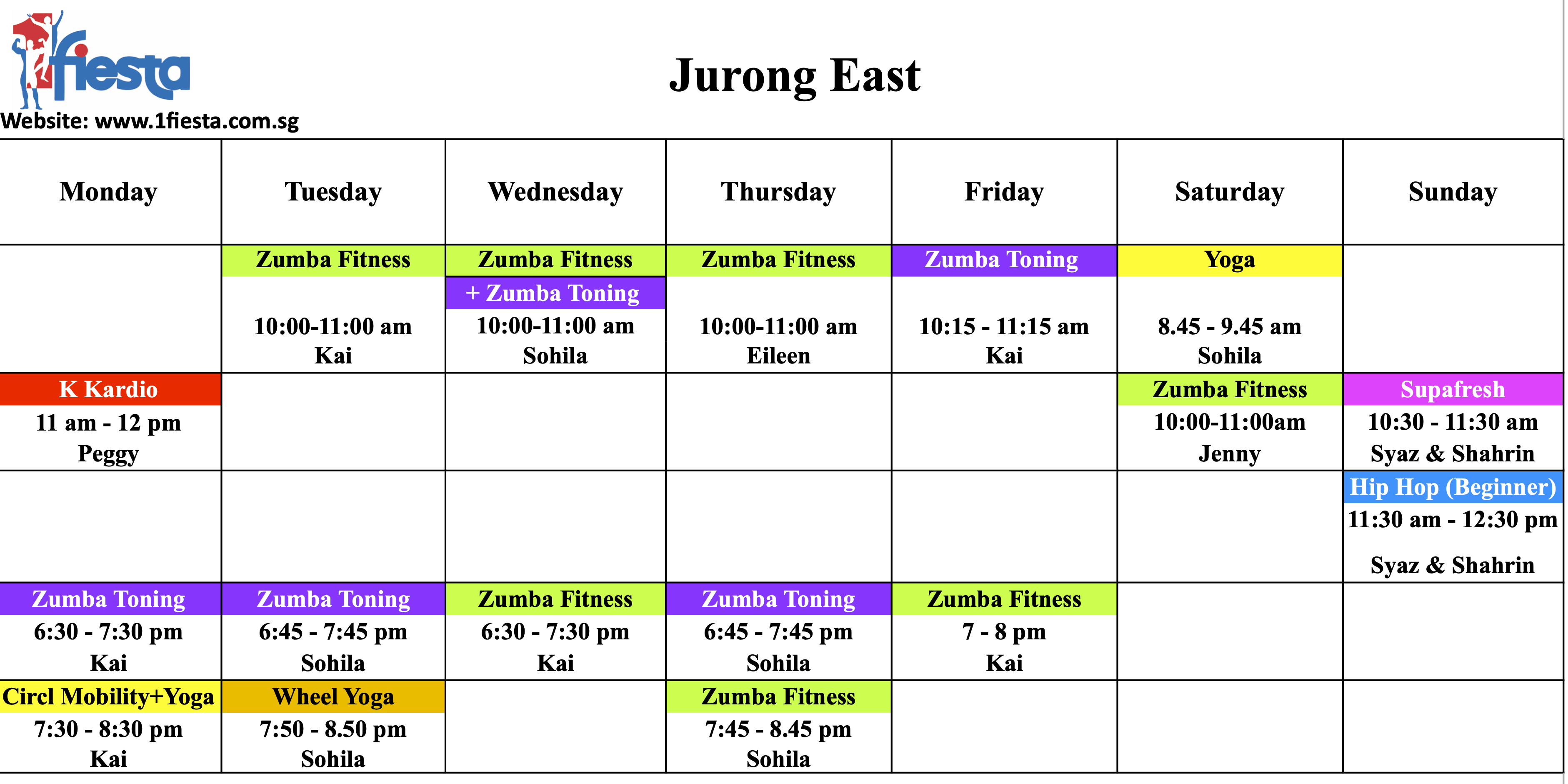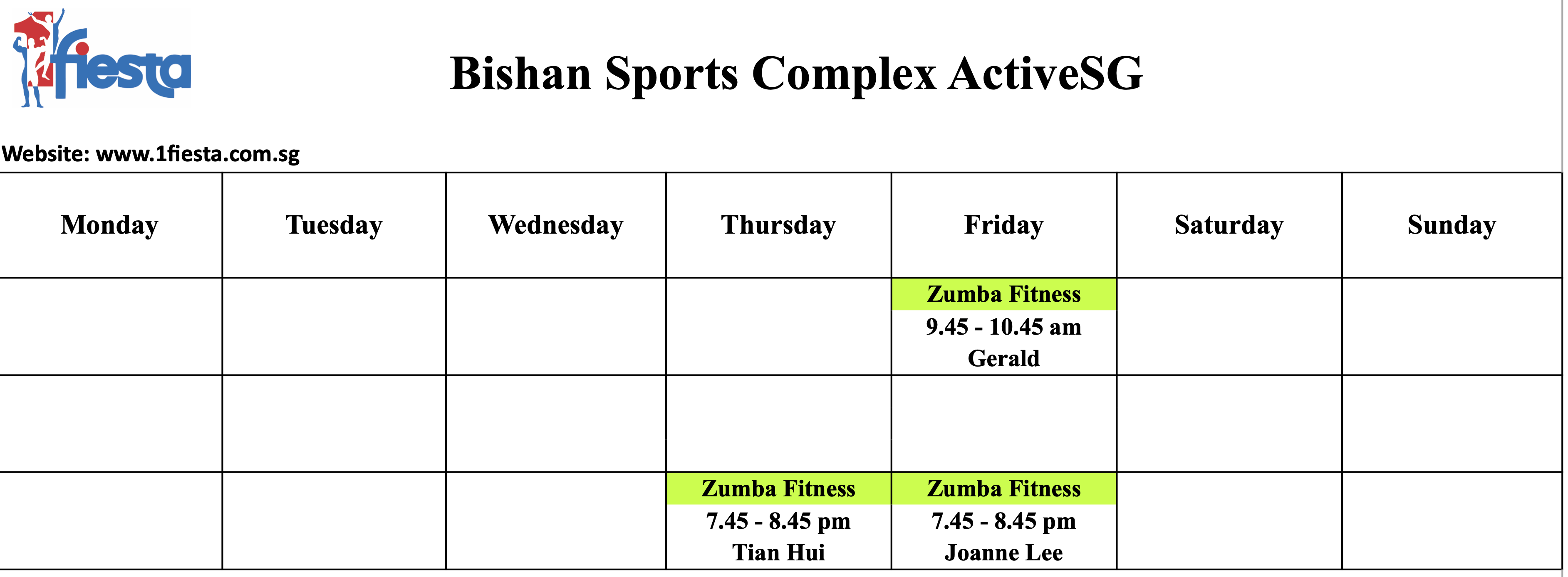 RSVP at Classes page: https://1fiesta.com.sg/schedule/